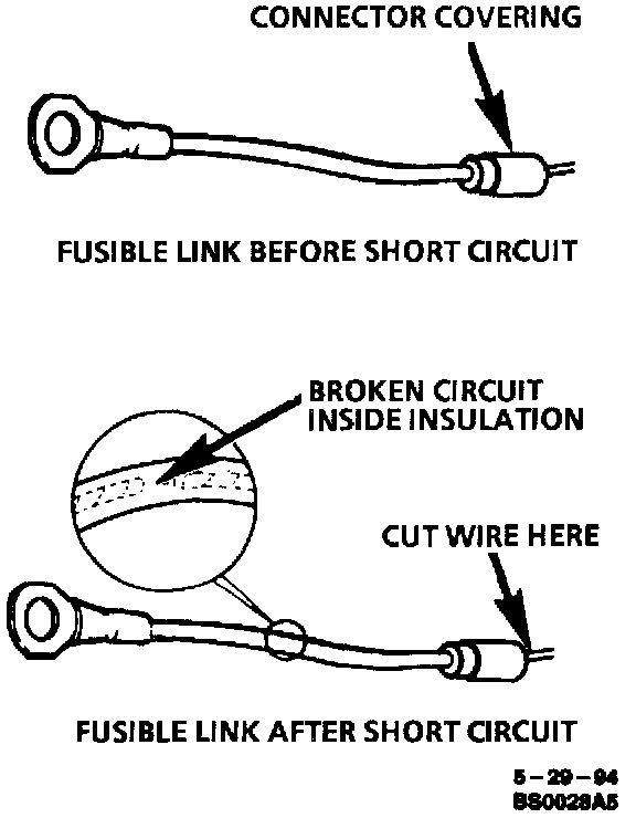 Not all fusible link open Circuits can be detected by observation. Always inspect that there is battery voltage past the fusible link to verify continuity.