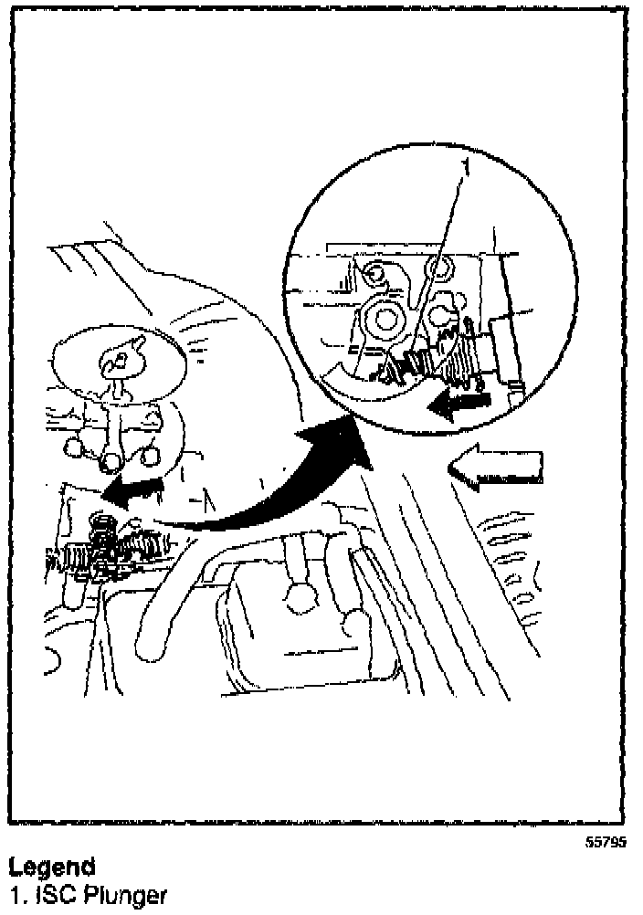 NOTE: Before replacing the Idle Speed Control (ISC) motor the throttle lever screw and the throttle stop screw must be checked for evidence of tampering. Perform the following two inspections.