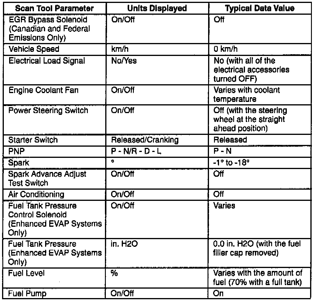 Scan Tool Data List