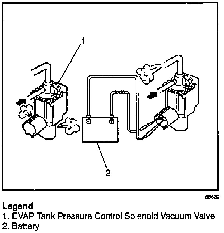 5. Connect 12 volts DC to the EVAP Tank Pressure Control Solenoid vacuum valve terminals.