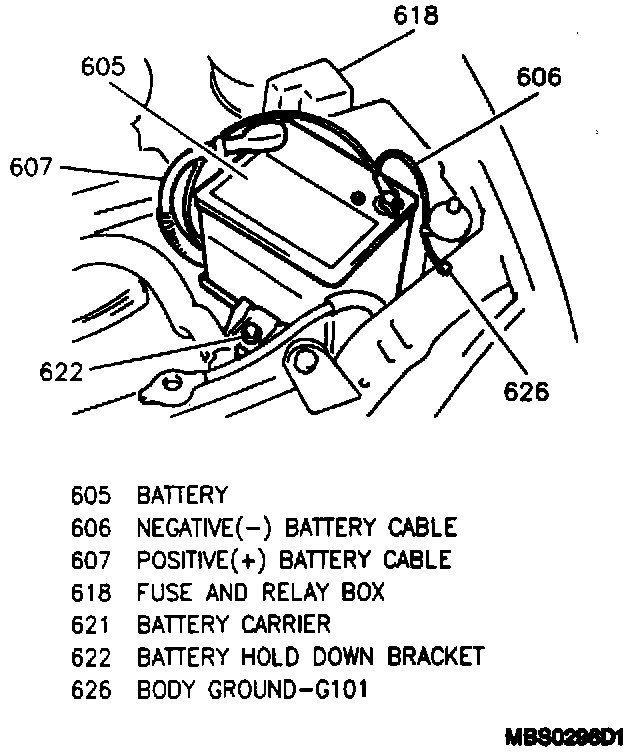 1. Negative (-) battery cable from negative (-) battery terminal.