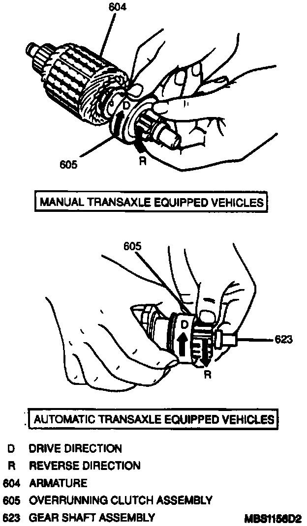 2. Overrunning clutch for wear, damage or other abnormal conditions. Check that the clutch locks when turned in the drive direction and rotates smoothly in the reverse direction. Replace if necessary.