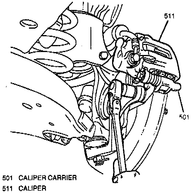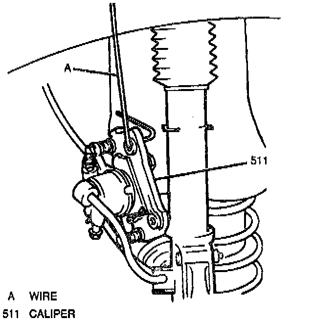 8. Suspend caliper/caliper carrier with a wire to prevent damage to the brake hose.