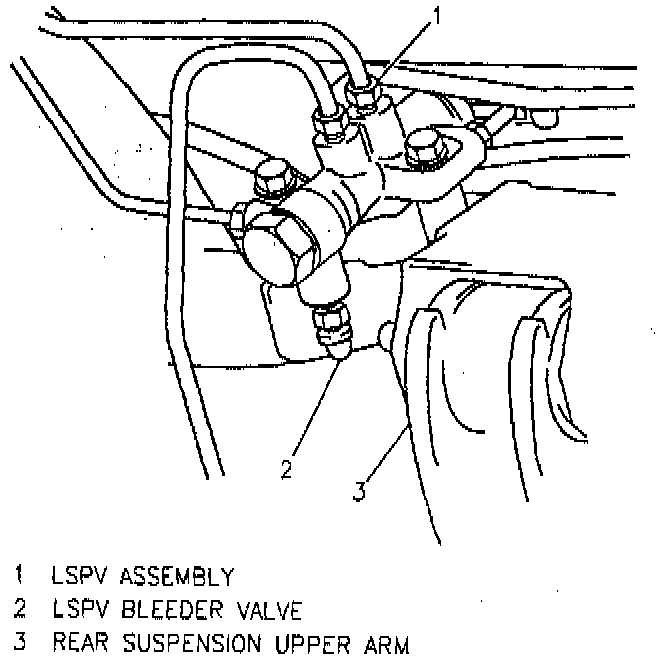 3. Three brake pipes from the Load Sensing Pressure Valve (LSPV). Plug the end of the brake pipes to prevent fluid loss and contamination.