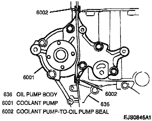 22. Rubber seals between coolant pump and oil pump and between coolant pump and cylinder head.