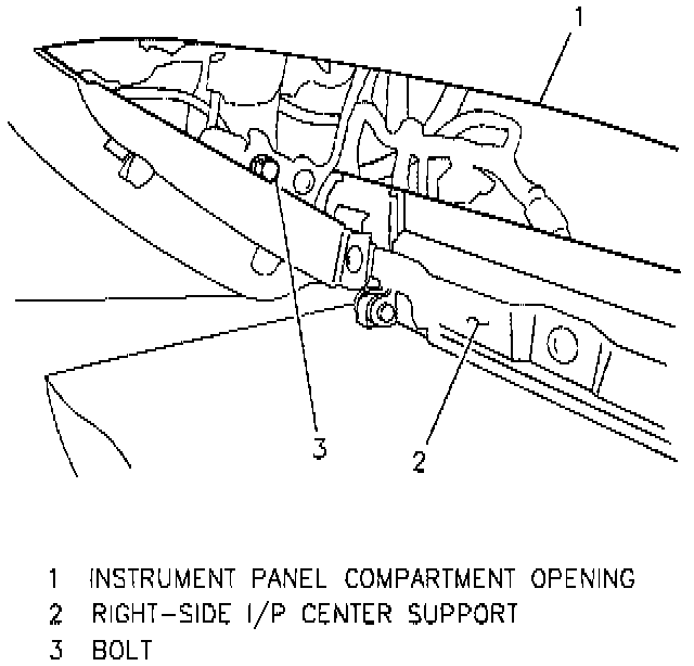 13. Right-side instrument panel center support; secure with two bolts.