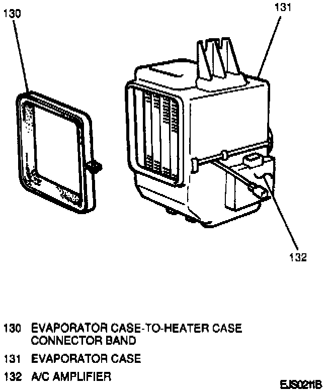 10. Evaporator case-to-heater case connector band; slide band on from heater case and tighten.