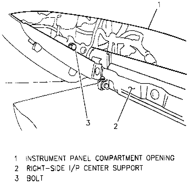 8. Right-side instrument panel center support; secure with two bolts.