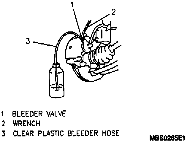 d. Close the bleeder valve and release the brake pedal. Repeat steps (b) through (d) until no air bubbles are present.