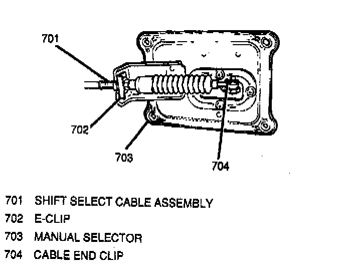 10. E-clip from shift select cable bracket on transmission and shift select cable from vehicle.