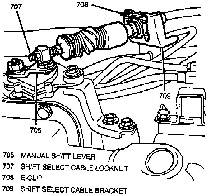 - Tighten shift select cable locknut to 7 Nm (69 inch lbs.).