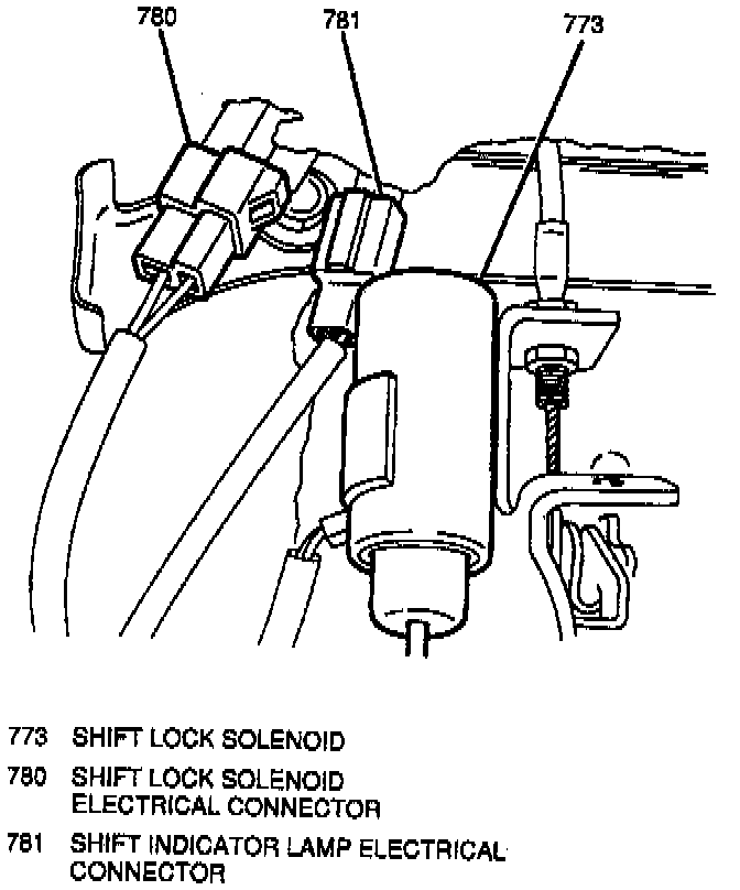 5. Two bolts and shift lock solenoid from selector lever detent bracket.