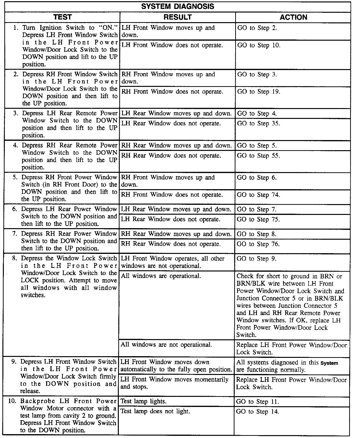 System Diagnosis - Power Windows