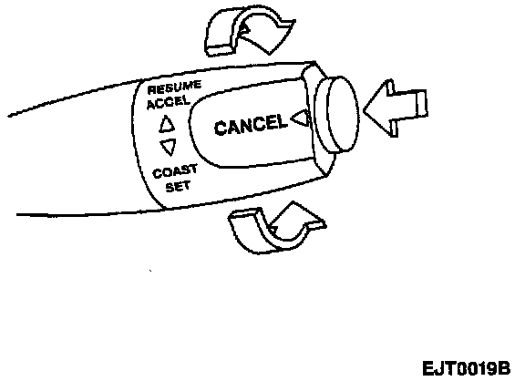 The CANCEL button is part of the cruise control mode switch. When pressed, it signals the cruise control module to immediately suspended cruise control operation.