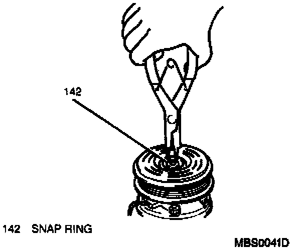 4. Clutch pulley snap ring and shim, using snap ring pliers.