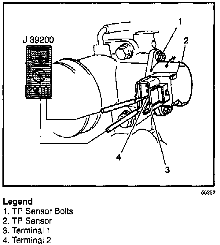 1. Connect a DMM (J 39200) to the TP sensor terminal 1 to 2 (TP sensor side).