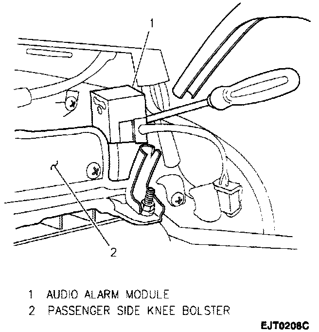 The audio alarm module is mounted inside the instrument panel, between the radio and instrument panel compartment.