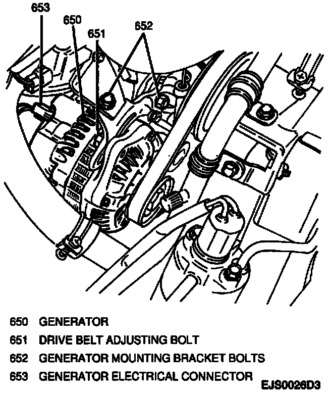 ^ Generator upper mounting bracket bolts to 27 N.m (20 lb. ft.).