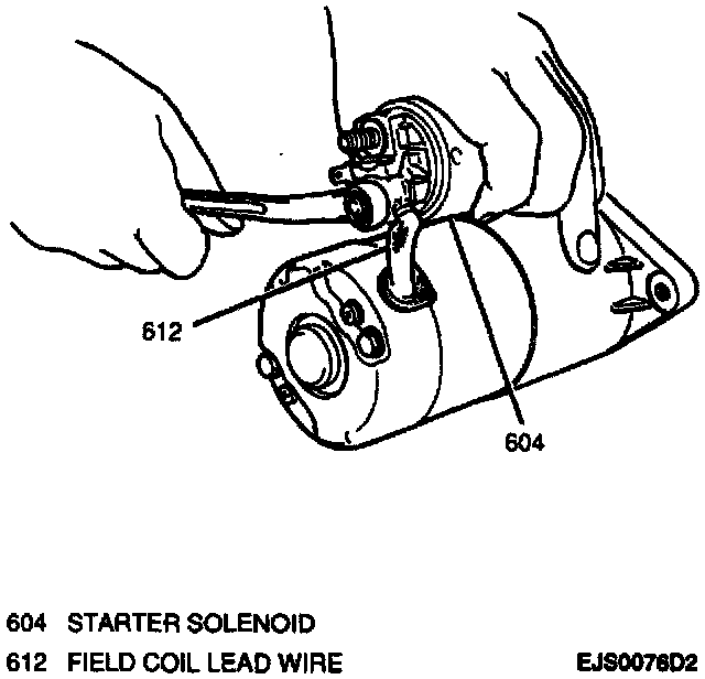 1. Retaining nut and field coil lead wire from starter solenoid.