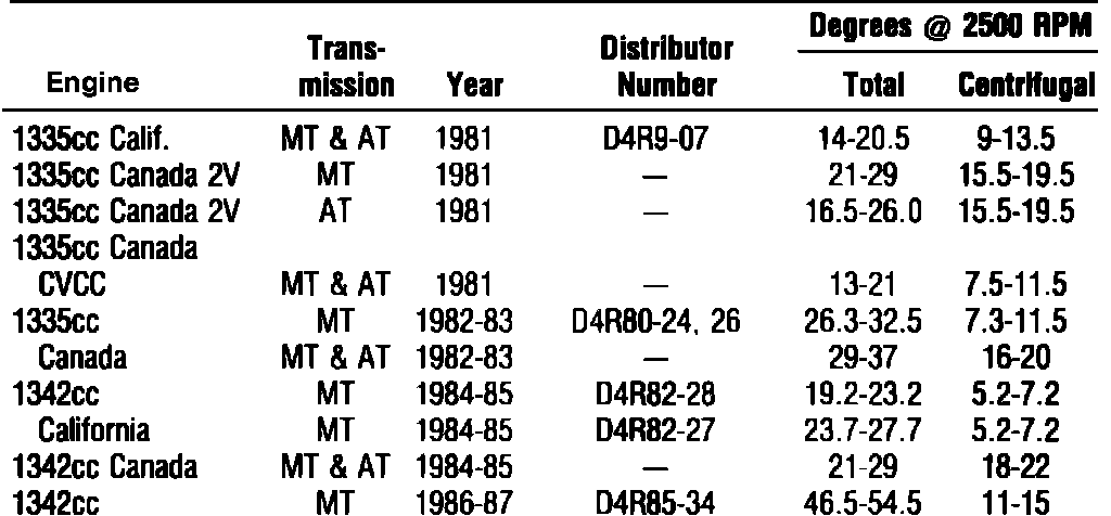 Fig. 011 Distributor Timing Advance Specifications: