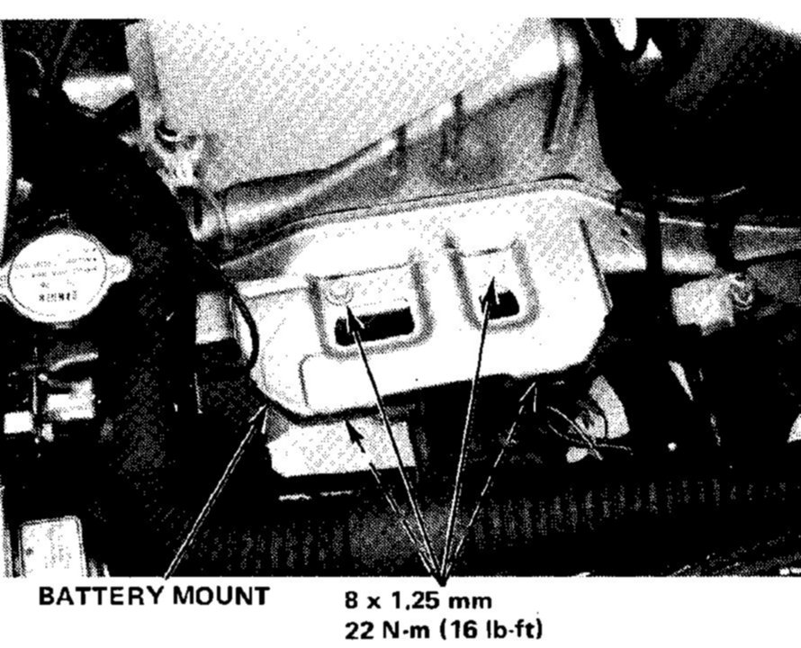 NOTE: On reassembly, clean battery posts and cable terminals with sandpaper, assemble, then apply grease to prevent corrosion.