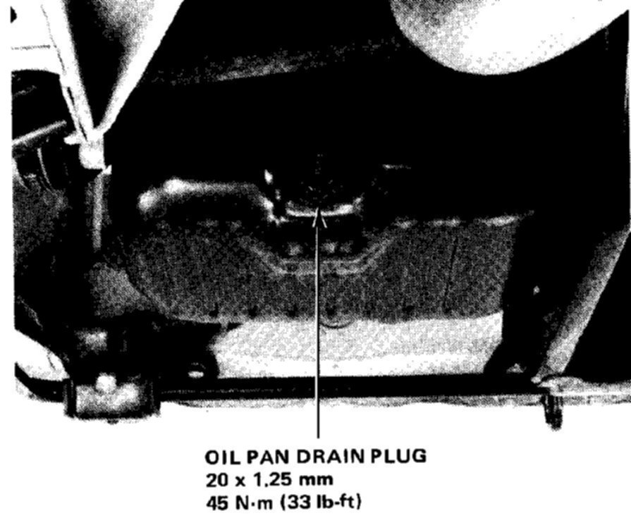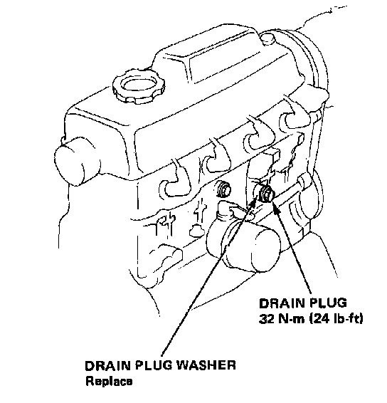 8. Drain engine oil. Remove oil filler cap to speed draining. Reinstall drain plug with new washer.