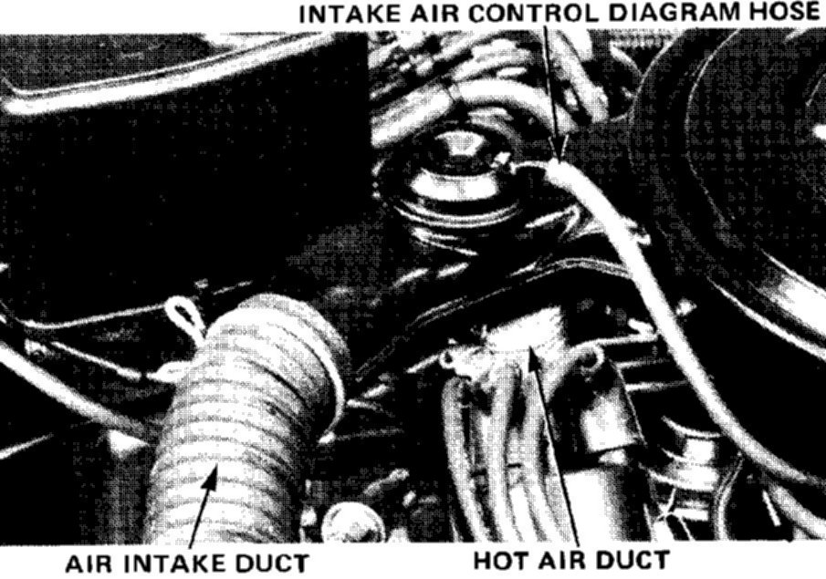 10. Disconnect the intake air control diaphragm nose, air intake duct and hot air duct.