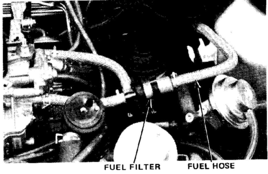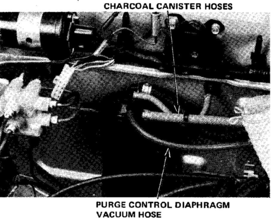 23. Disconnect the purge control diaphragm vacuum hose from the diaphragm and the charcoal canister hoses from the carburetor.
