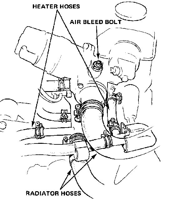 NOTE: When refilling cooling system, open heater salve and unscrew air bleed bolt to bleed air out of system.