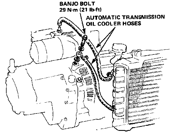 29. On Automatic Cars: Disconnect transmission oil cooler hoses at the transmission, let ATF drain from hoses, then hang hoses Up out of the way near the radiator.