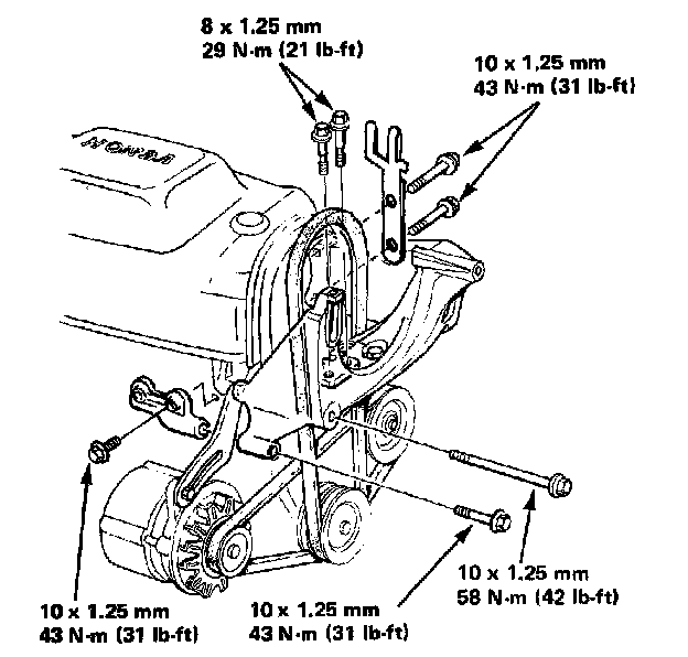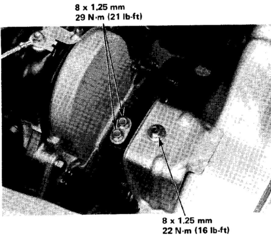 NOTE: On cars with A/C the two 8 mm bolts were already removed in step 33.