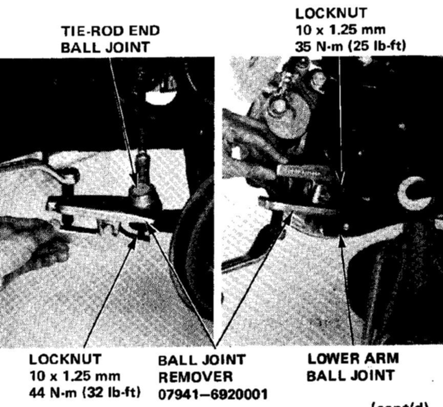 35. Disconnect right and left lower arm hall joints and tie-rod end ball joints using Ball Joint Removal Tool, or you can remove pivot bolts from lower control arms instead, and leave ball joints connected.