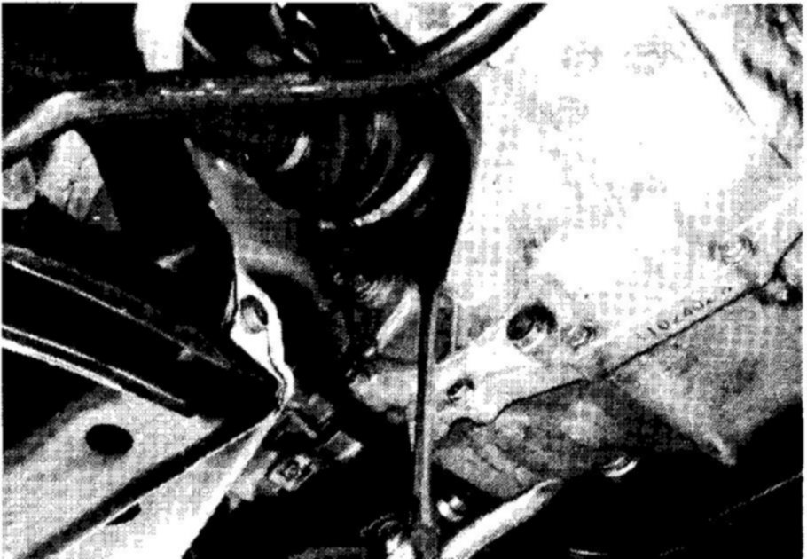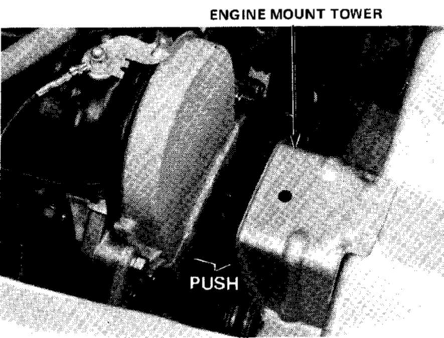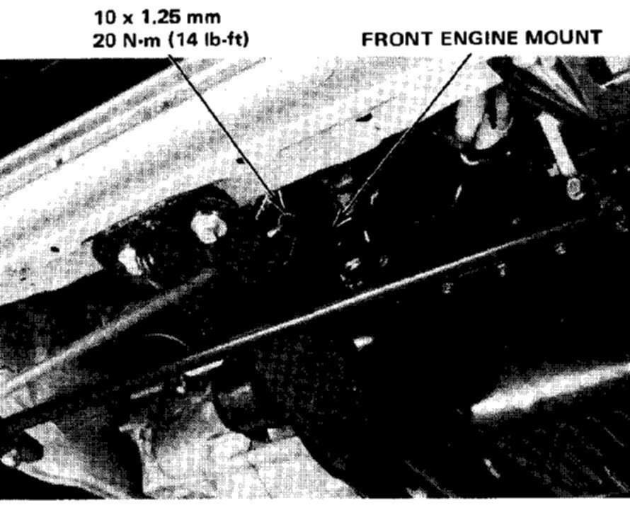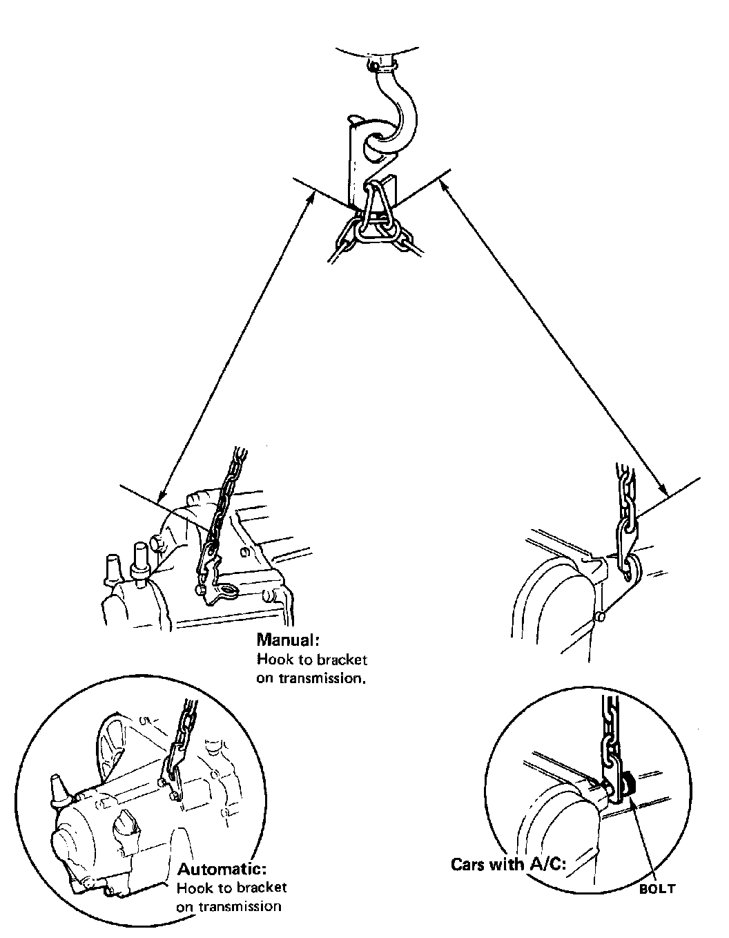 40. Attach hoist chain to engine block and bracket on transmission and raise hoist lust enough to take weight off engine mounts.