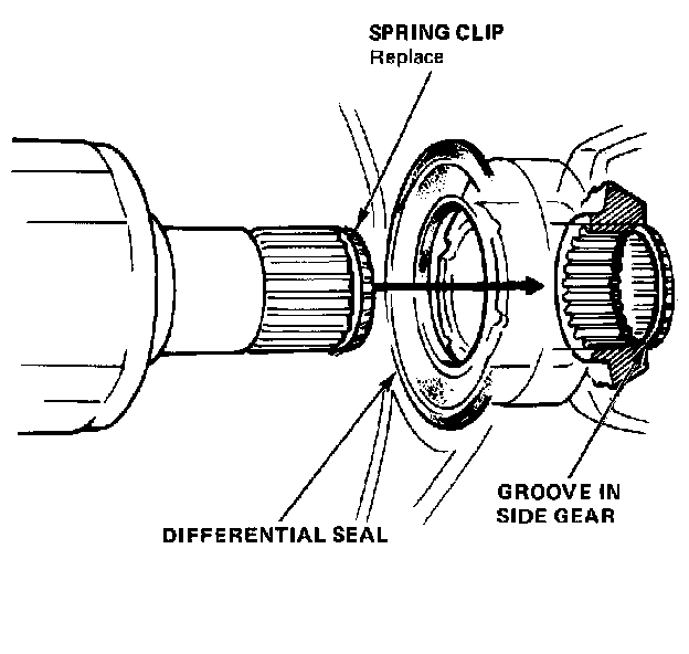 NOTE: When installing driveshaft, insert shaft until spring clip clicks into groove in differential side gear. Always use new spring clips when installing driveshafts.