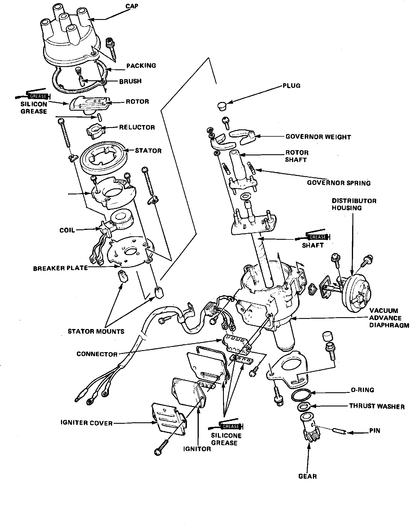Fig. 44 Toyo Denso electronic distributor exploded view.: