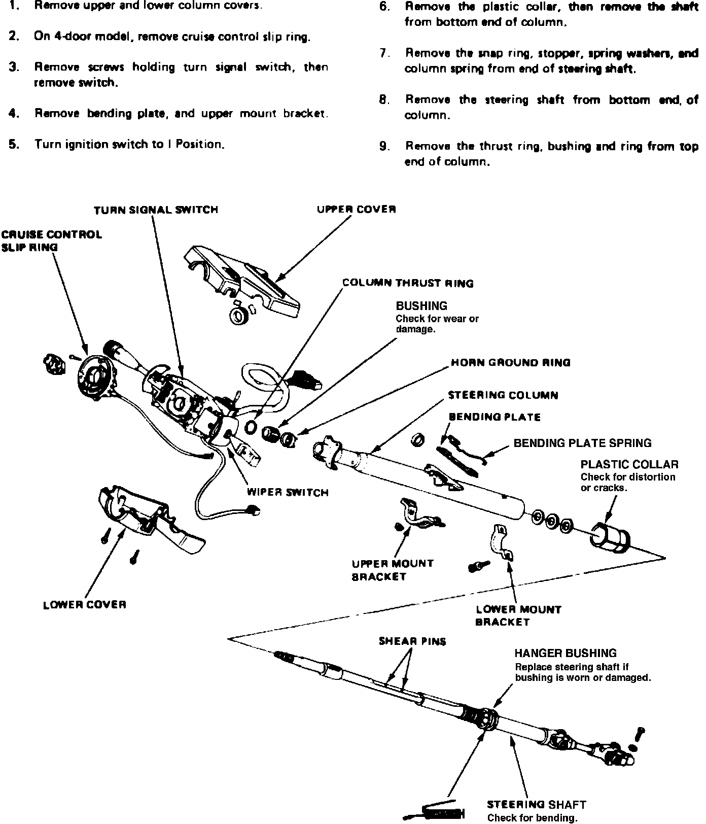 Fig. 2 Steering column exploded view. 1984-85 Accord w/power steering:
