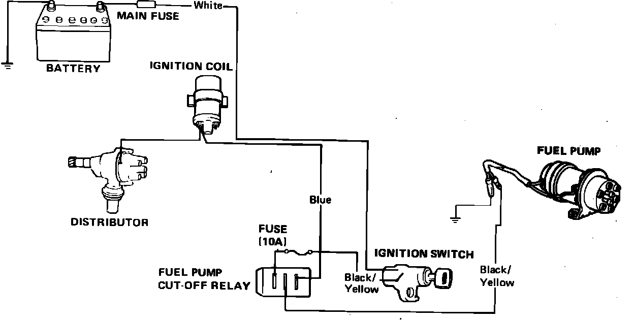 Fig. 16 Fuel Pump Cut-Off Relay Wiring Circuit. 1983-84 Accord: