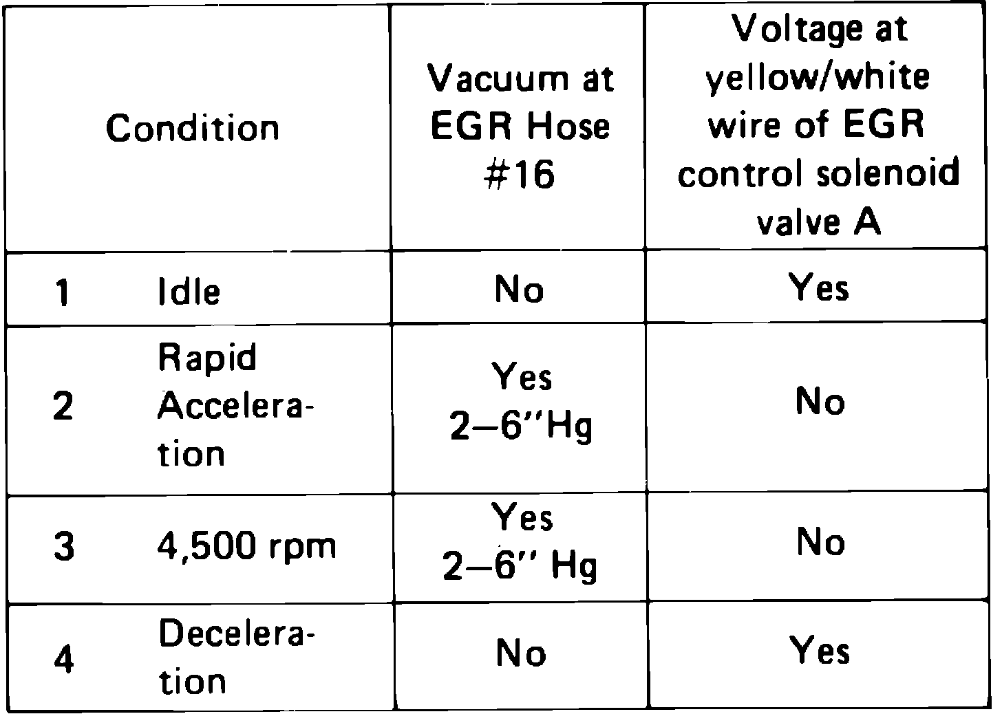 1. Replace EGR control solenoid valve A and repeat test.
