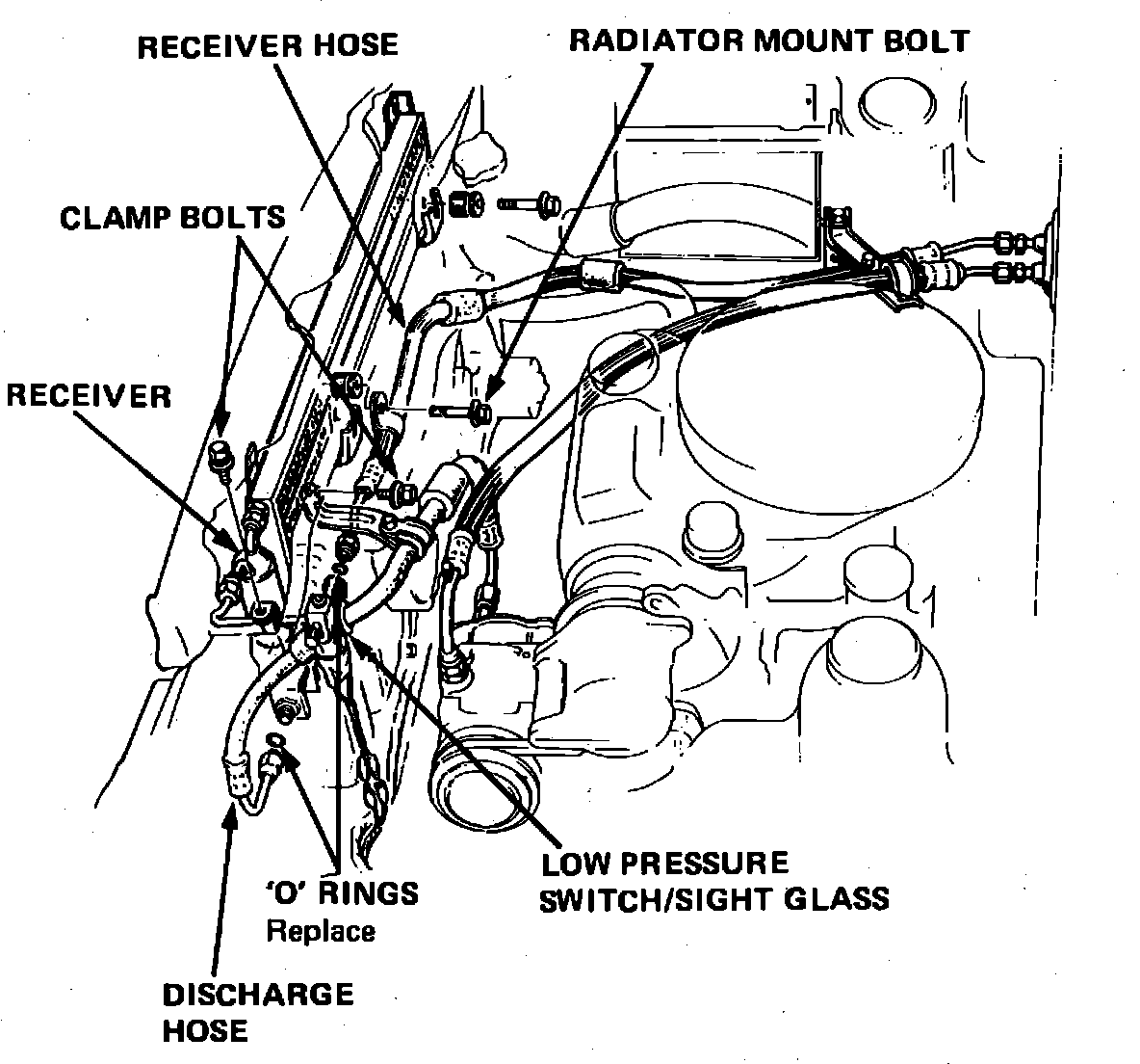 Fig. 8 Component & Bolt Locations For Condenser Removal: