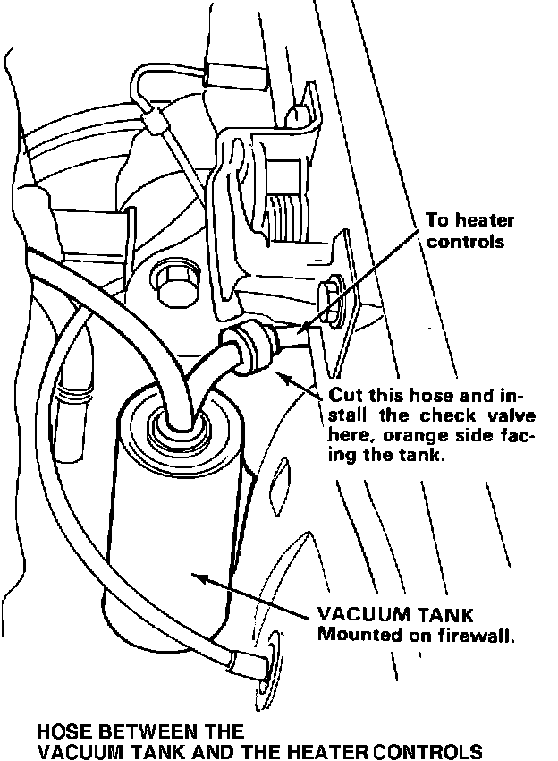 Cut the hose between the vacuum tank and the heater controls, and put a check valve in it. Make sure the orange side of the check valve is facing the tank.