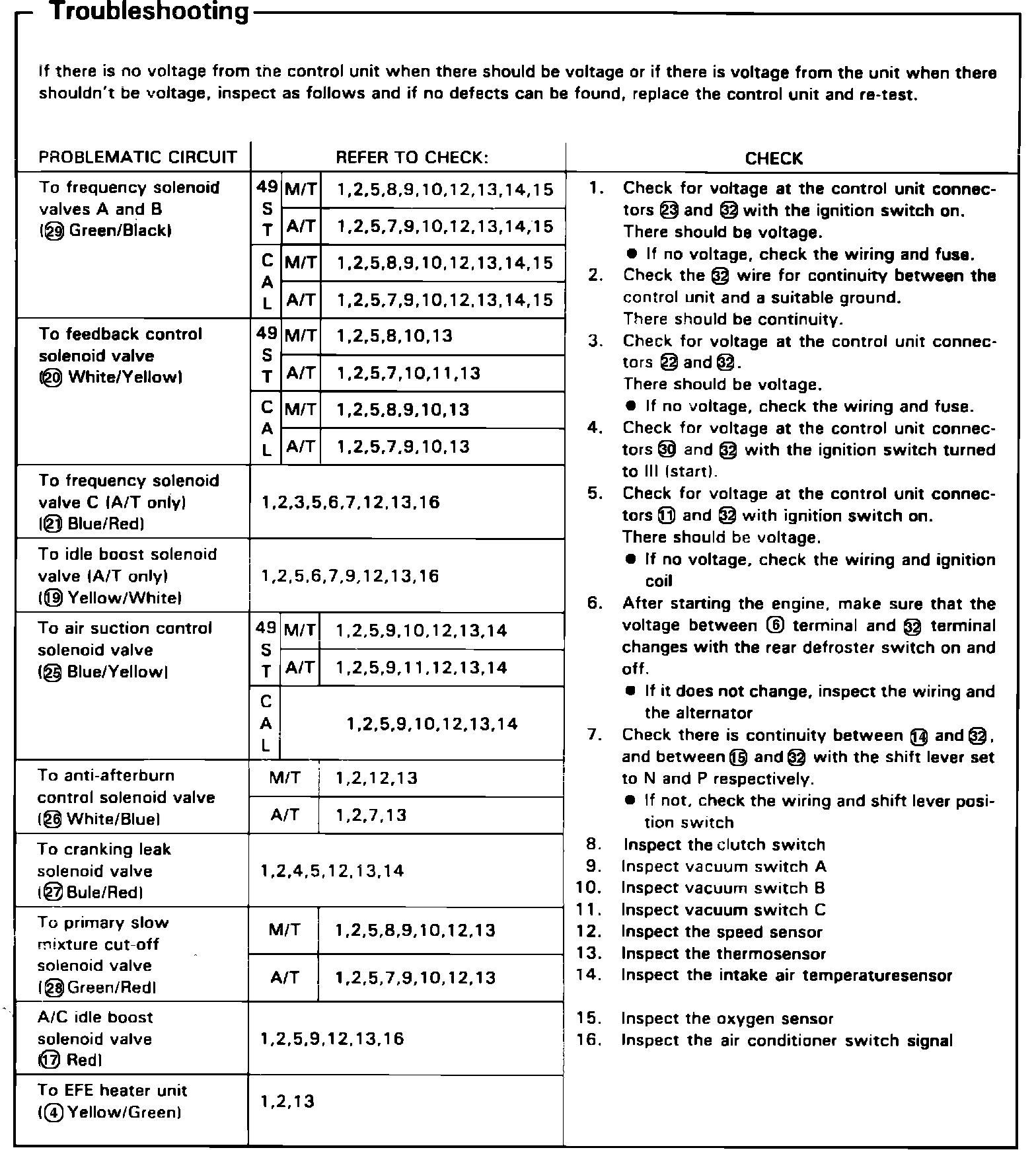 Fig. 15 Control Unit Troubleshooting Chart.: