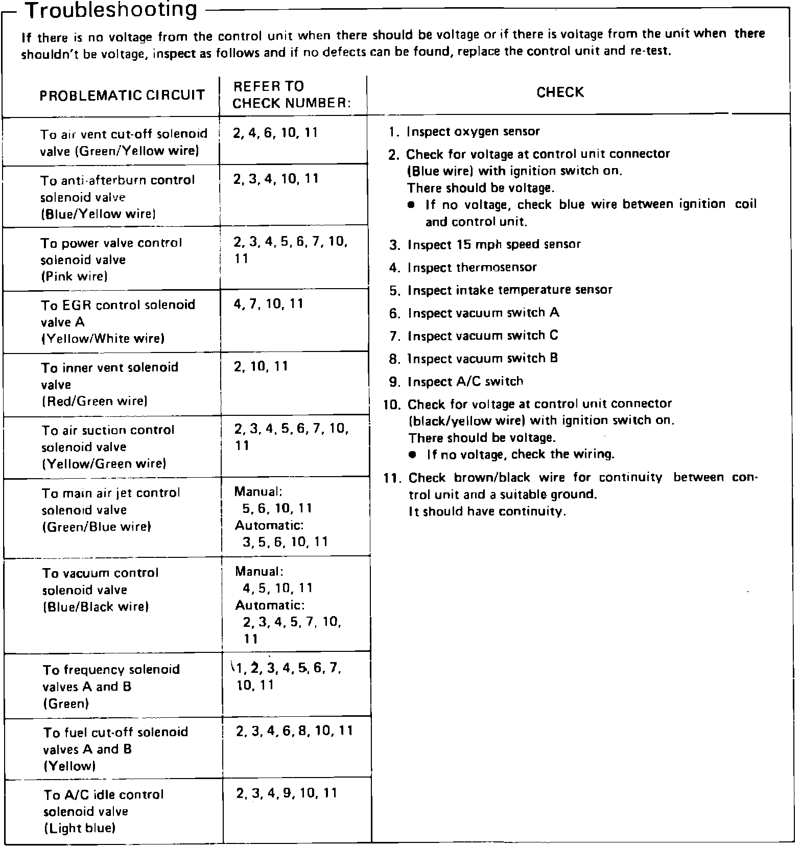 Fig. 45 Control Unit Troubleshooting Chart.:
