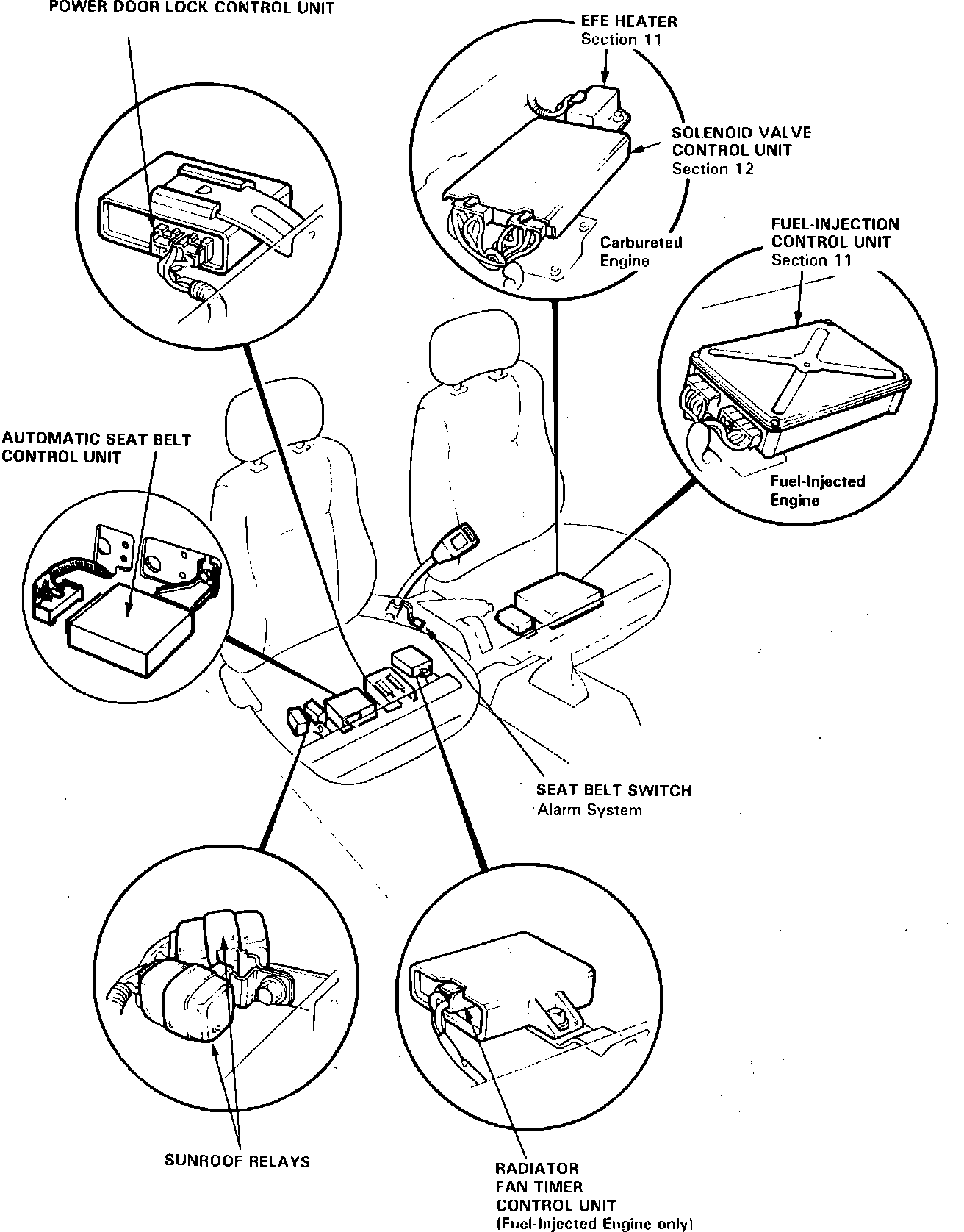Fig. 90 Relay, Switch & Control Unit Locations: