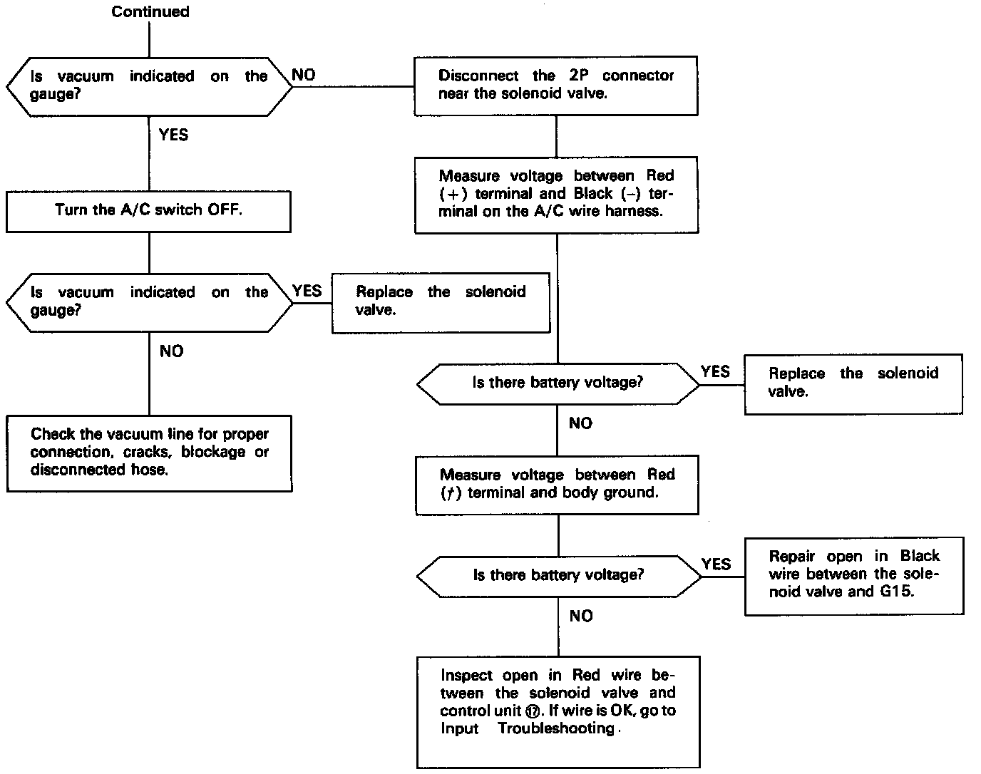 The A/C idle boost solenoid valve is energized when the A/C compressor is energized, applying vacuum to the outer diaphragm of the idle boost throttle controller. This increases the idle speed when the A/C compressor is on.