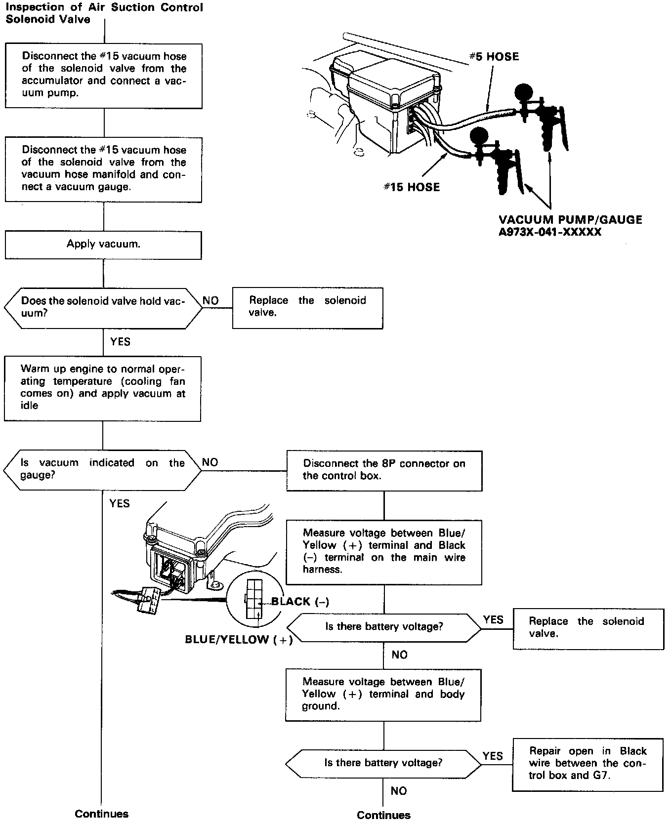 When the air suction control solenoid valve is activated, manifold vacuum raises the diaphragm valve of the air suction valve and fresh air from the air cleaner is induced to the exhaust manifold through the reed valve of the air suction valve by pulsation of the exhaust gas.