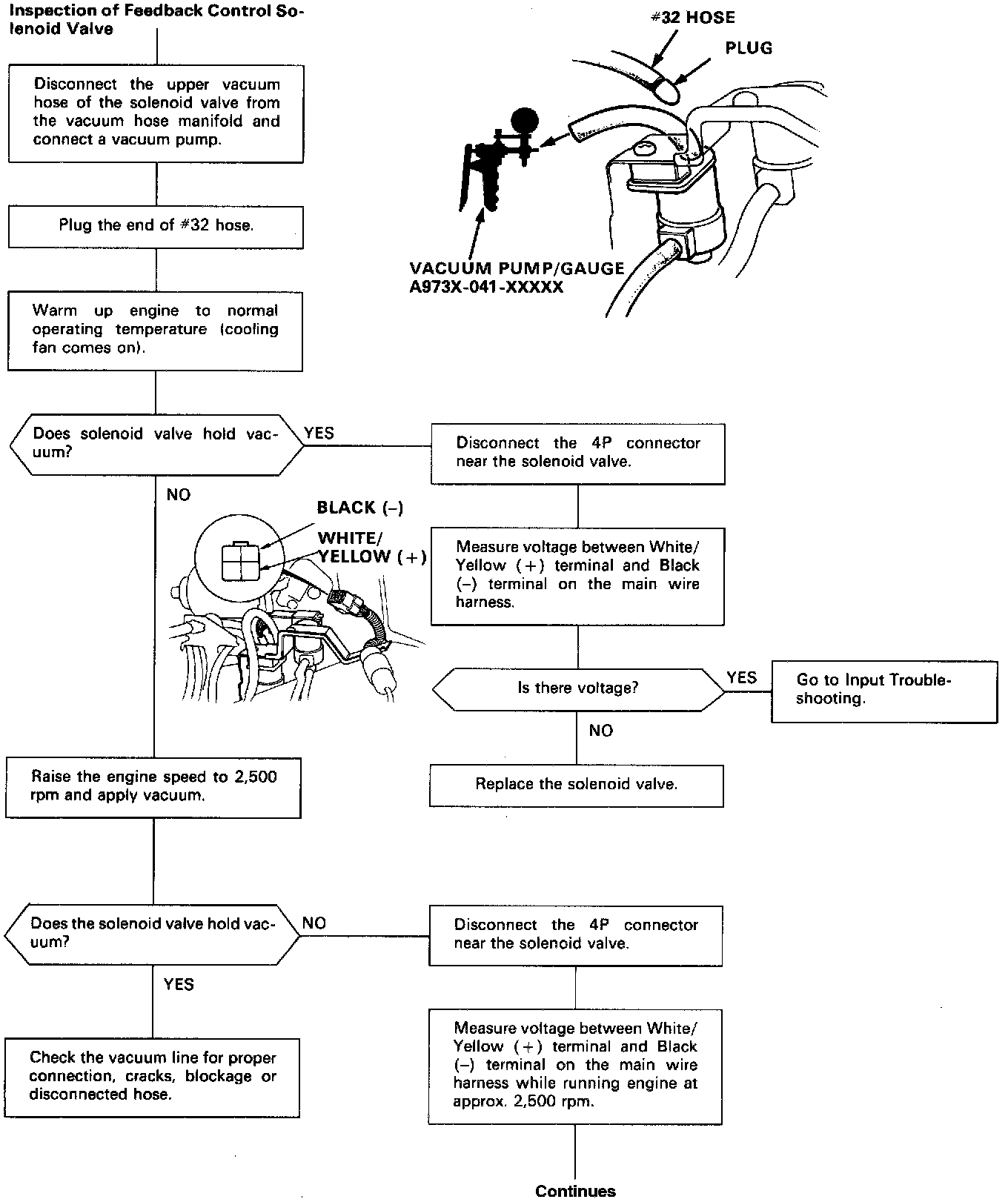 The feedback control system is designed to provide a stoichiometric air-fuel ratio, allowing the three-way catalyst's performance to give a simultaneous reduction of hydrocarbons, carbon monoxide and oxides of nitrogen. The feedback control solenoid valve is provided to stop feedback operation at low engine speed such as at engine idling.