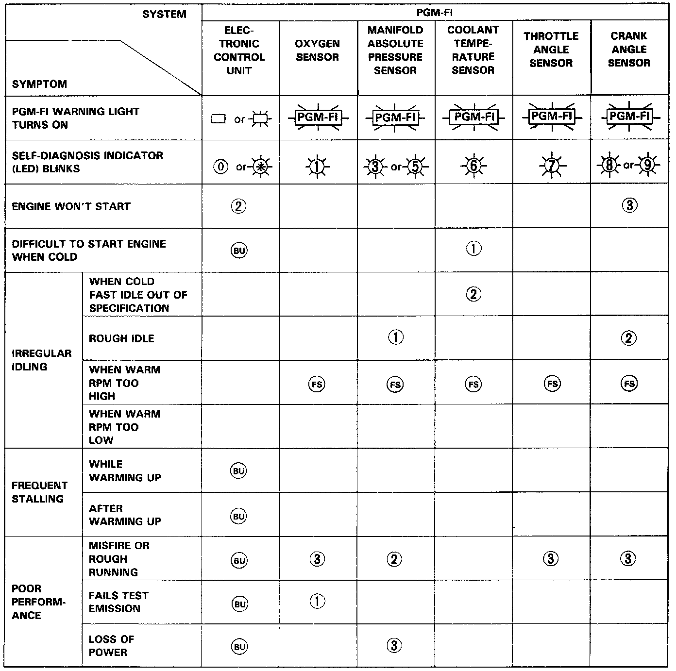 (BU) : When the PGM-FI warning light is on with no blinks on the self-diagnosis indicator, the back-up system is in operation.