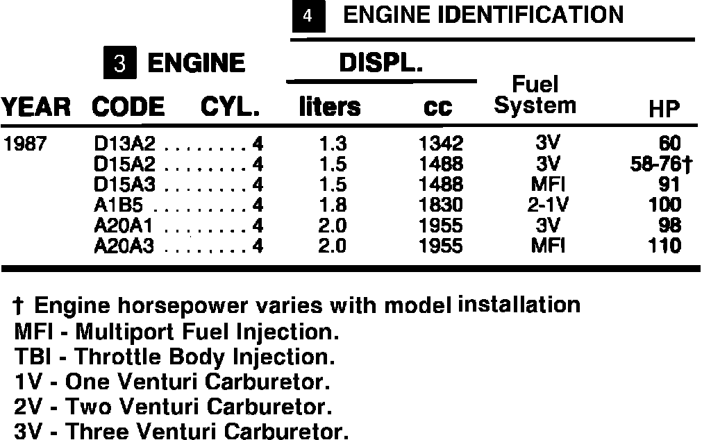(4) ENGINE IDENTIFICATION: