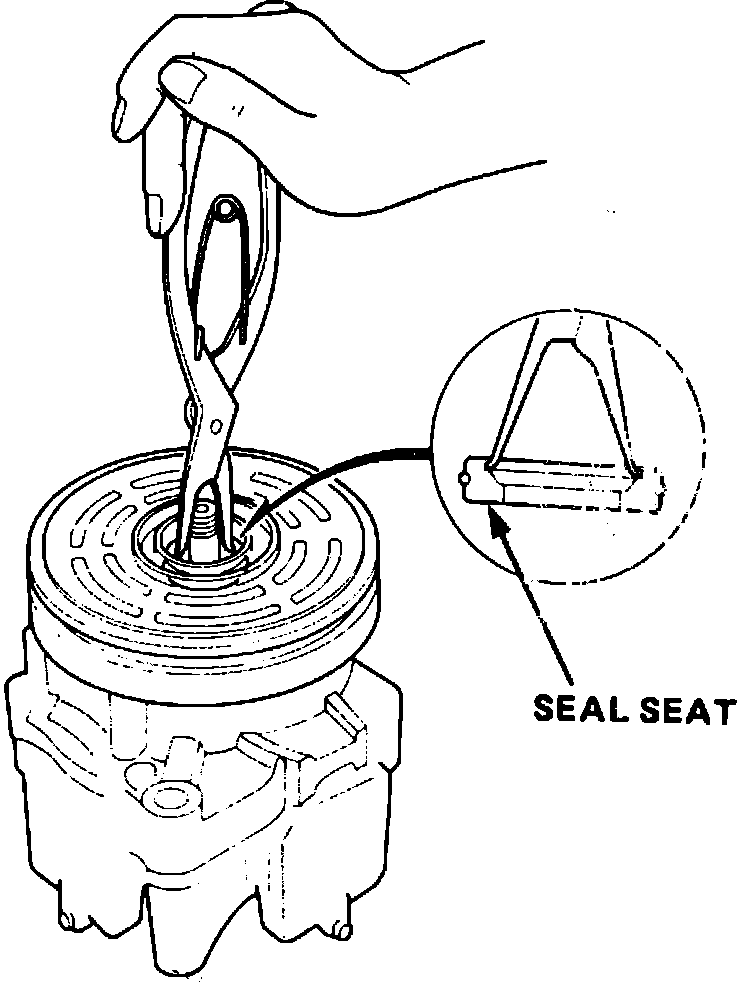 6. Place compressor assembly on a suitable workbench, then clean shaft seal mating surface in a suitable solvent.
