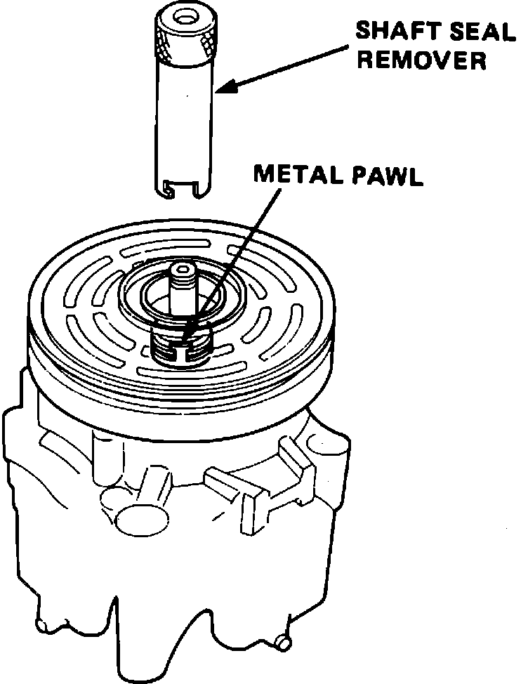 4. Insert shaft seal remover tool, Fig. 5, then rotate tool to ensure cutout is engaged with metal pawl.